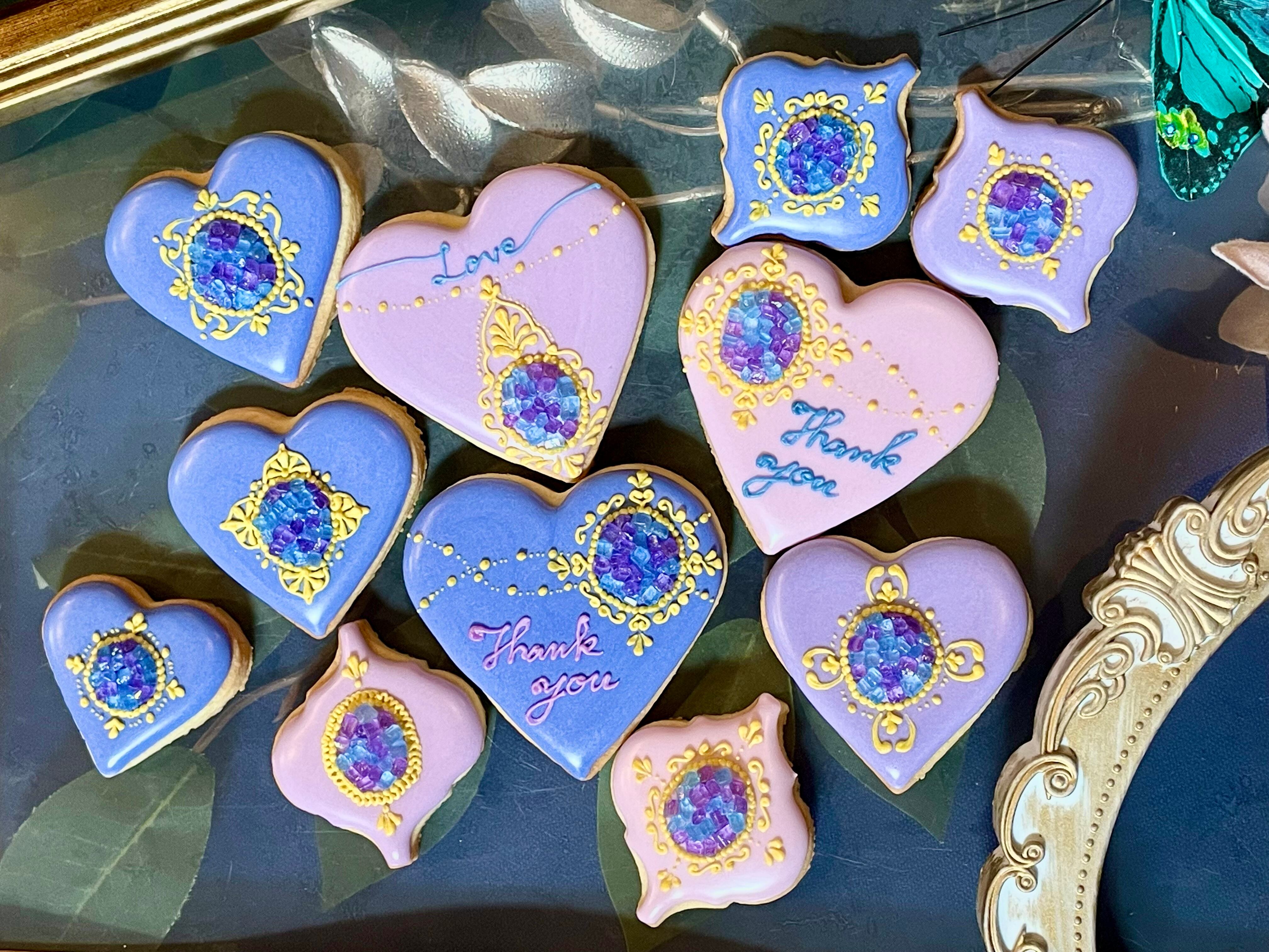 ジュエリーのようなキラキラしたアイシングクッキー6枚のセット。
